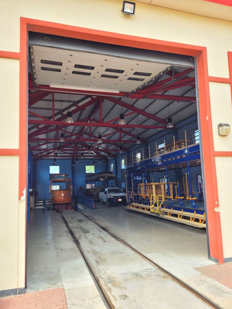 Nun aber endlich zur Straßenbahn. Fahrpläne sucht man ohnehin vergeblich, aber im Hafen liegt ein Kreuzfahrer. Damit stehen die Chancen gut, dass sie fährt. Wir gehen die Gleise entlang. Nichts. Wir kommen am Depot vorbei. Die Tür steht offen. Ein Zug fehlt. Ok, das sieht eigentlich nicht schlecht aus. Trotzdem schauen wir auch an der Endhaltestelle vergeblich.