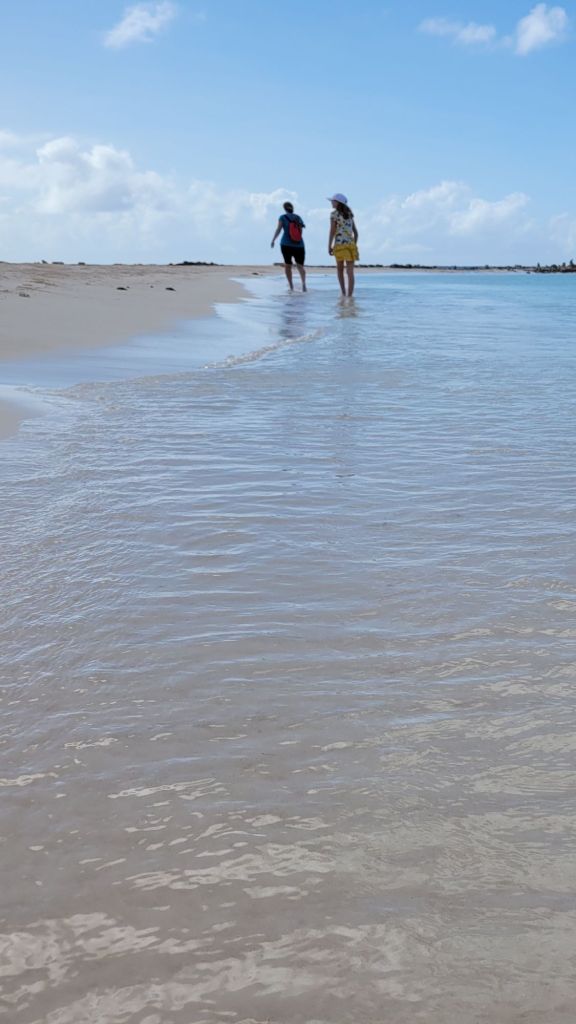Während Samuel bei Jörg am Auto bleibt und auf Vogelpirsch geht, spaziert der Rest der Crew den bei Einheimischen und V-Autos gleichermaßen beliebten Strand entlang. Einziger Wermutstropfen für Maila sind die zwei neugierigen uns umtobenden Strandhunde. Nein, ihr Lieblingsstrand wird das nicht.