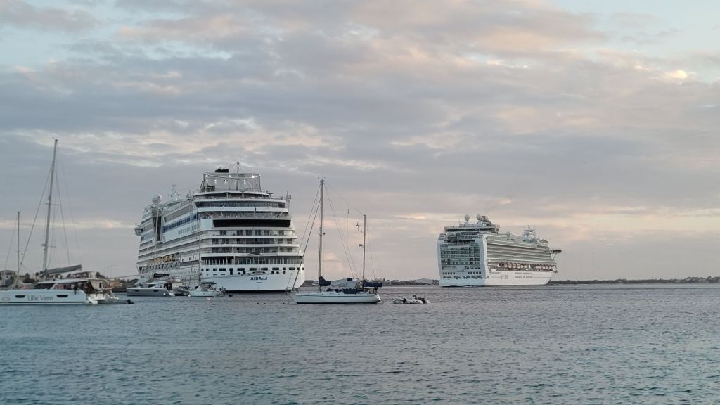 Tja und dann gibt es da ja auch noch die Kreuzfahrer. Wer kann nach den Nachrichten der letzten Wochen noch an die von den Veranstaltern gebetsmühlenartig verbreiteten Sicherheitsbekundungen der schwimmenden Hotelburgen glauben? Das amerikanische Seuchenkontrollzentrum CDC überwacht dutzende Schiffe (jedoch weder AIDA noch Mein Schiff). Trotzdem gibt es genug Nachfrage von Menschen mit Anspruch(?!). Selbst im kleinen Bonaire mit seinen nur gut 20.000 Einwohnern legt fast jeden Tag ein Kreuzfahrer an. Gerade gestern sorgt die AIDAperla dafür, dass in den Straßen Kralendijks sehr viel deutsch gesprochen wird. In zwei Wochen ist sie schon wieder hier. Heute dagegen dominiert bei der Regal Princess englisch mit US-Akzent.