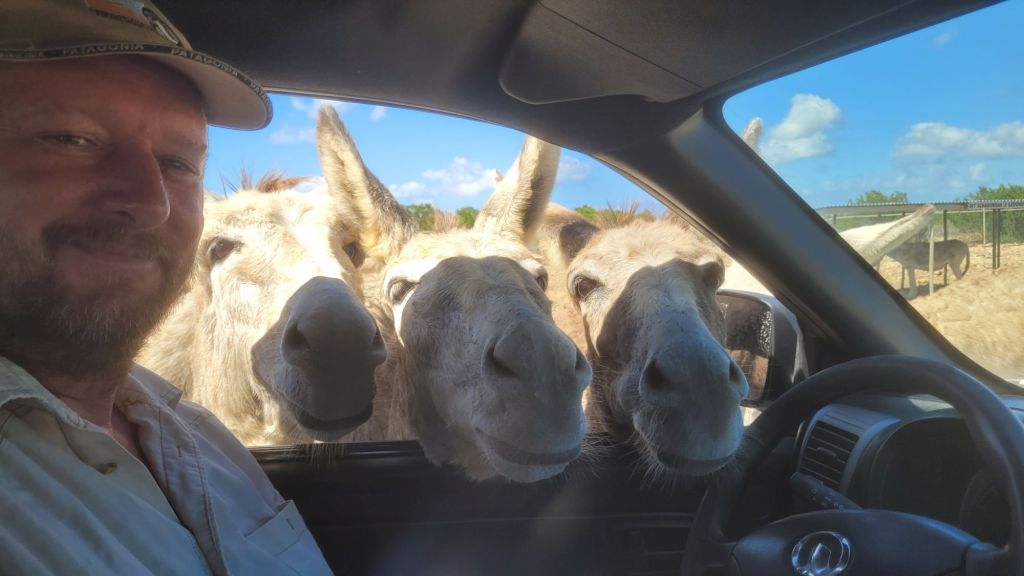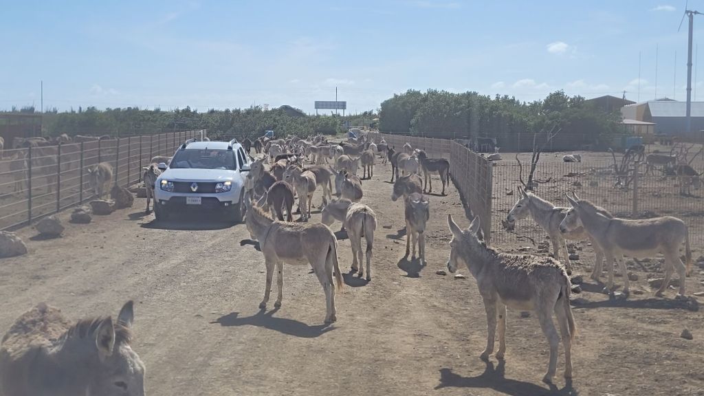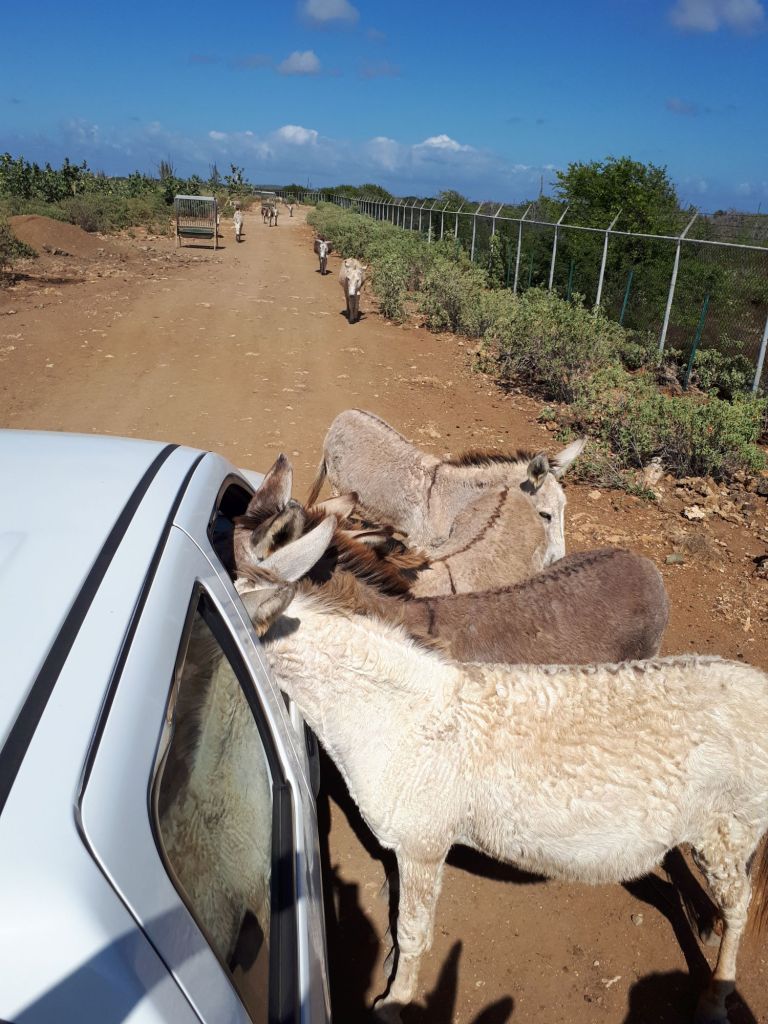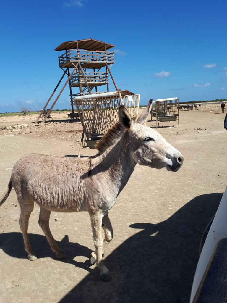 Und das mit den Dimensionen betrifft nicht zuletzt auch die schiere Größe des Donkey Sanctuary Bonaire. Ein Spaziergang den Zaun entlang würde sich da echt in die Länge ziehen. Darum ist hier eine kleine Rundfahrt mit dem Auto üblich. Und wieder einmal stellt es sich als wahres Glück heraus, dass wir einen Pickup gemietet haben.