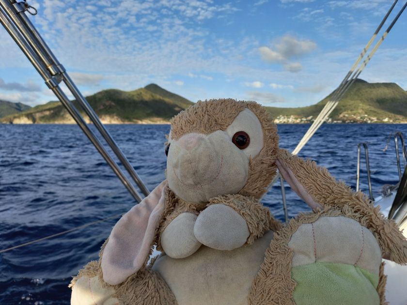 Einen ausgeschlafenen Morgengruß von der Samai! Die letzten Meilen Richtung Martinique waren nicht so doll. Mit (natürlich nicht angesagten) 5 Windstärken auf die Nase schaukeln wir uns (immer noch unter Motor) gegen den Strom und eine erstaunlich kurze, steile Hackwelle in Richtung „Saint Lucia Channel“. Das ist die Passage zwischen den bergigen Inseln Martinique im Norden und Saint Lucia im Süden. Da können sich lokal schon mal unangenehme Bedingungen einstellen. Auch unseren Mädels wird so langsam etwas unangenehm. Quälend langsam kommt die Insel näher. Schön ist anders. Da reift beim Skipper eine Idee. Ich schaue zur Sicherheit nochmal in die letzte Windvorhersage. Ja, das passt. Am Montag soll sich eine für die Weiterfahrt hilfreiche Nordkomponente in den Wind schleichen. Die Nacht davor dagegen kräftig direkt aus Osten blasen. Eine kleine Pause wäre also in mehrfacher Hinsicht willkommen. Und wie es der Zufall so will, liegt da ja eine Insel direkt vor dem Bug.