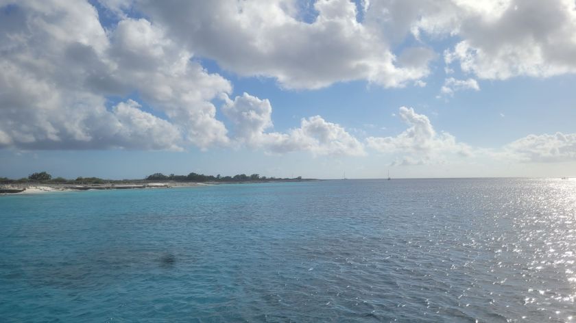 Nach einem schönen Mittag am Salzpier, wollen wir den Ausflug entspannt bei Klein Bonaire ausklingen lassen. Es ist ja nur ein Hüpfer, schnell ist die Südwestecke der kleinen Insel erreicht. Die nächsten zwei Moorings an der Südküste sind schon belegt, aber da wollen wir sowieso nicht hin. Wir halten Kurs zur Westküste.