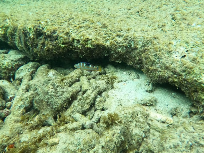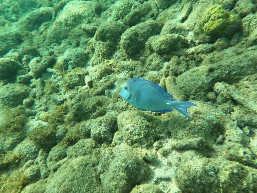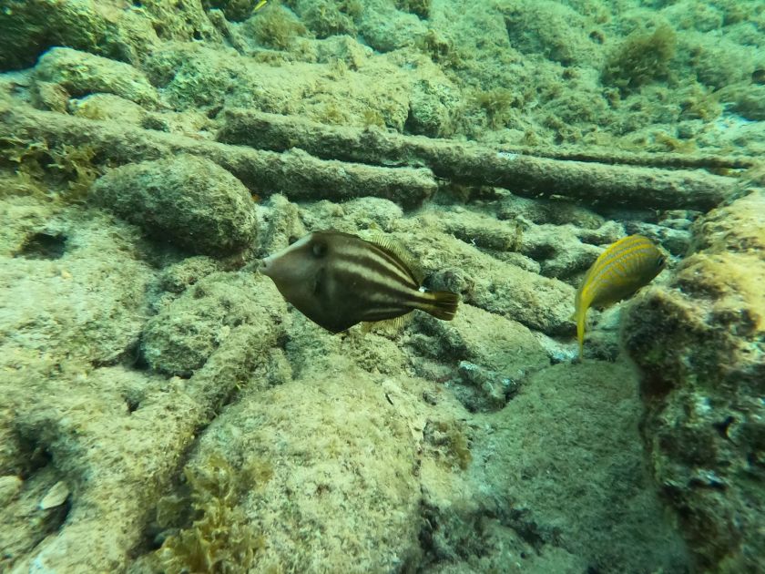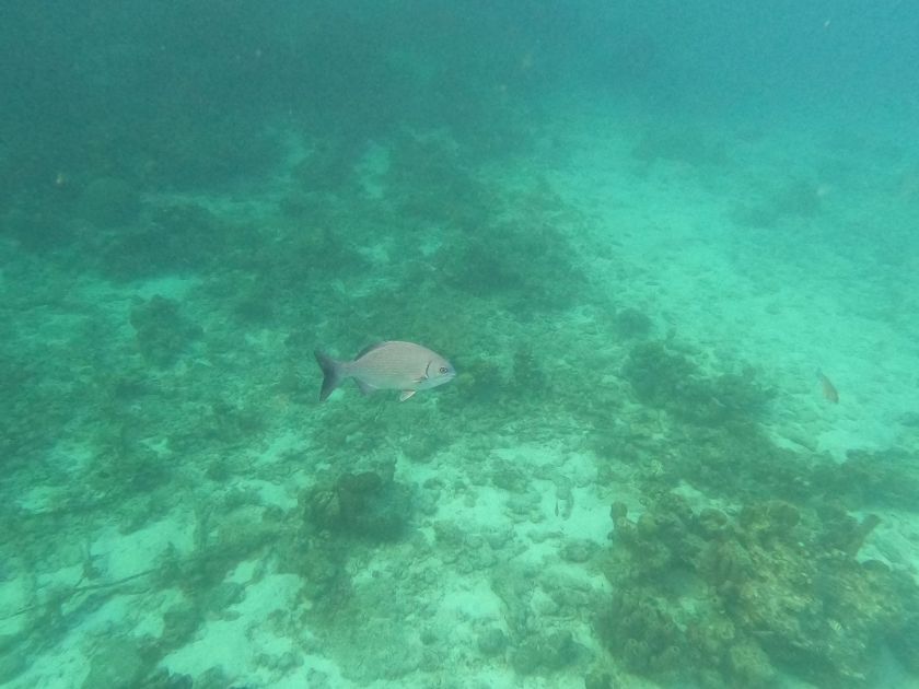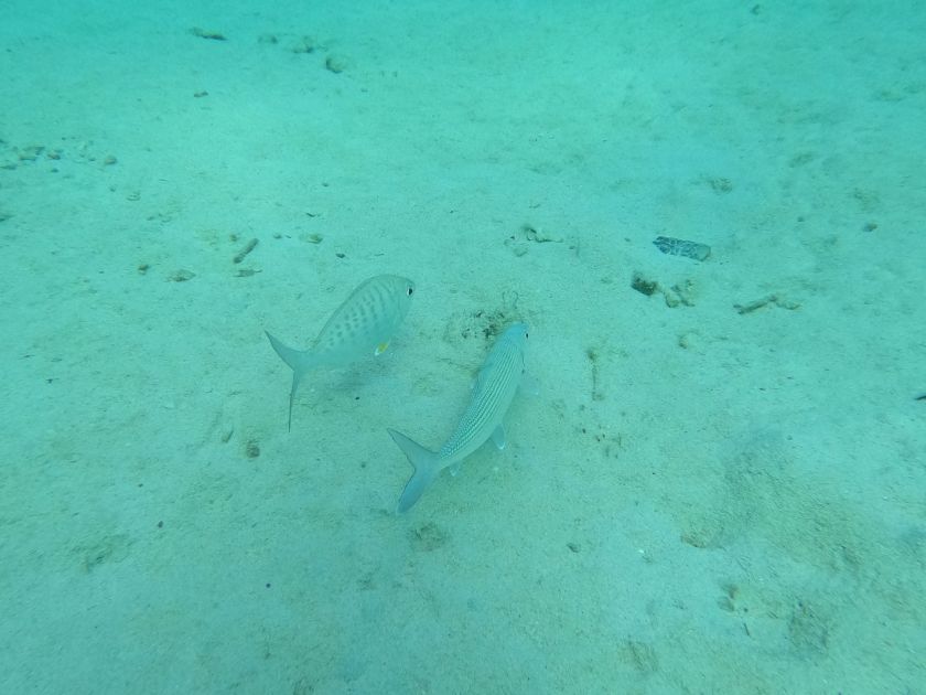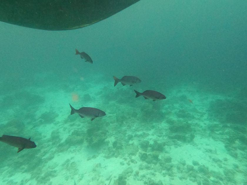 Direkt beim Boot ist es etwas tiefer. Da sieht man größere Fische und manchmal ganze Schwärme.