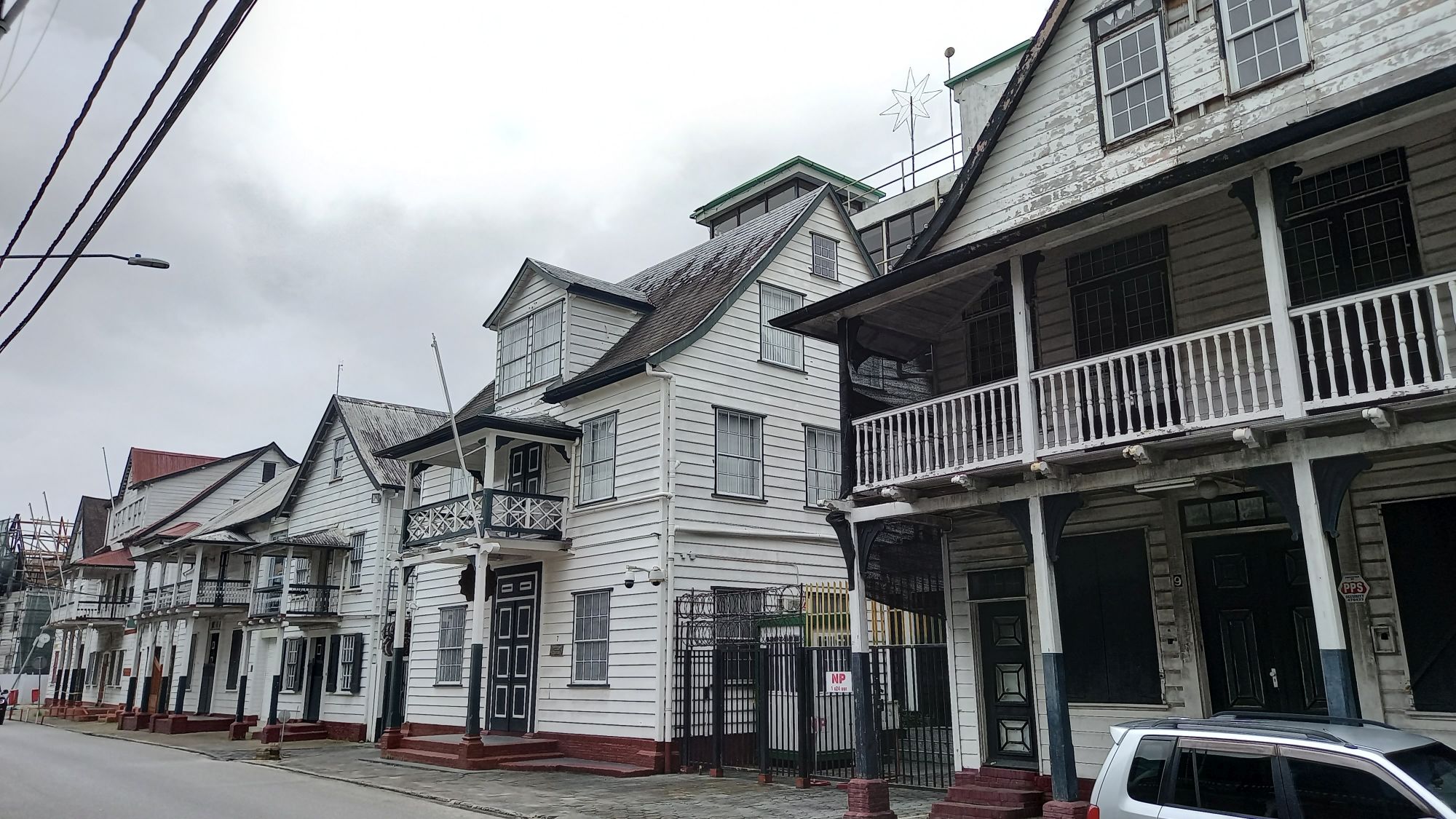 Das mit dem „ausgestorbenen Anschein“ gilt heute für die gesamte, 2002 ist die Liste der Welterbe aufgenommene historische Innenstadt von Paramaribo. Wir schlendern über verlassene Straßen, auf denen wir morgen mit Sicherheit um unser Leben rennen müssten. Der Charme ist wieder einmal nur als morbide zu bezeichnen. Einiges wird restauriert. Vieles scheint zu verfallen. Und natürlich findet (sich wie praktisch überall in Südamerika) ein Denkmal für Simón Bolívar.