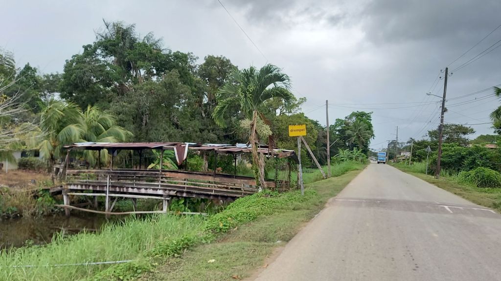 Das klingt soviel schöner als „Schwelle“. Ok, die Dinger sind natürlich nicht neu. In Ecuador werden sie uns als „schlafende Polizisten“ vorgestellt. Auch in Kolumbien holpert es immer mal wieder. Erste Höhepunkte sind die (ebenfalls niederländisch geprägten) Aruba und Bonaire. Aber hier in Suriname ist es schon extrem. Gerade in bewohnten Gegenden, besonders aber auch vor der Ölraffinerie, reiht sich Drempel an Drempel. Immerhin sind sie zu fast 100% gut ausgeschildert. Irgendwann gewöhnt man sich an das gefühlte Stop-and-go so ganz ohne andere Autos.