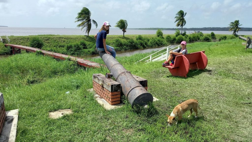 Parallel dazu wird 1907 die Administration des Bezirks Commewijne in das Fort verlegt. Dort befindet es sich noch heute. Direkt dahinter führen Wege über die Befestigungsanlagen direkt am Fluss. Immer noch zeigen die Läufe glücklicher Weise nicht mehr funktionsfähiger Kanonen auf den Fluss und bezeugen ihre alte Funktion. Ein beliebter Ort zum Schlendern und Erholen… wohl auch als Mittagspause von der anstrengenden Behördenarbeit. ;-)