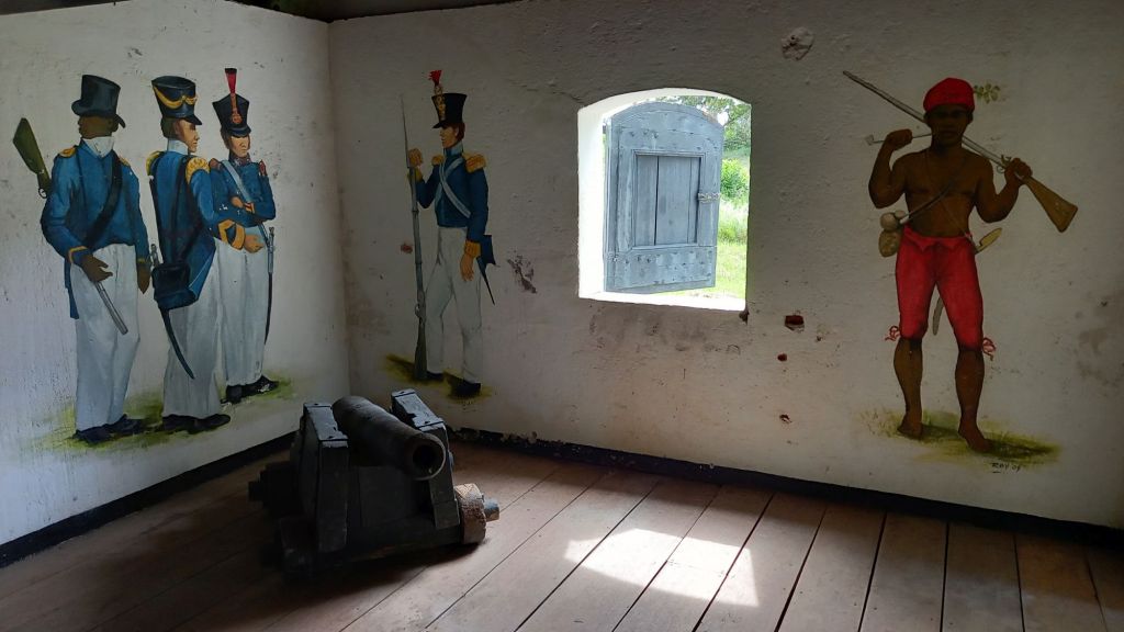 Auch das alte Pulverhaus aus dem Jahr 1740 ist einen Blick wert. Seine Wände sind 60cm dick. Im Falle einer Explosion wird damit zwar das Dach weggeblasen, doch der Rest hält stand und schützt das Fort. Besonders schön ist, dass die alten Kanonen hier im Museum mal nicht aufwändig auf- und ausgestellt sind, sondern sich da befinden, wo sie meiner Meinung nach letztlich hingehören… im Dreck!
