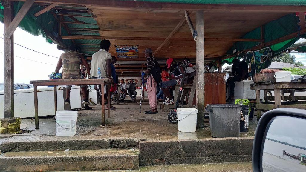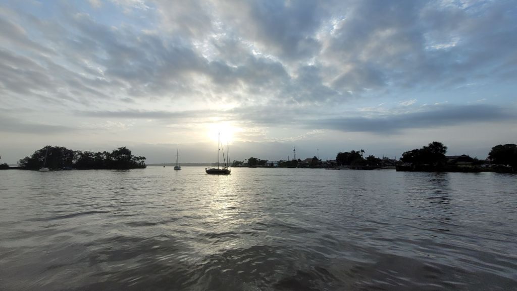 Überhaupt diese Pirogen, also um die 10m langen Einbaumboote mit Außenbordmotor. Hunderte soll es hier geben. Der rege Grenzverkehr lässt daran keinen Zweifel aufkommen. Für 5€ hat man schnell übergesetzt. Zur Erinnerung: das hier ist EU-Außengrenze! Ja macht die Küstenwache denn nichts dagegen? Aktuell nicht wirklich. Sie haben kaum mehr als ein kleines Schnellboot zur Verfügung und dafür noch nicht einmal einen eigenen Steg. Da ist der Kampf gegen stündlich dutzendfachen illegalen Grenzübertritt ein Kampf gegen Windmühlen. So sitzen sie meist in ihrem Häuschen mit Flussblick und genießen die Aussicht.