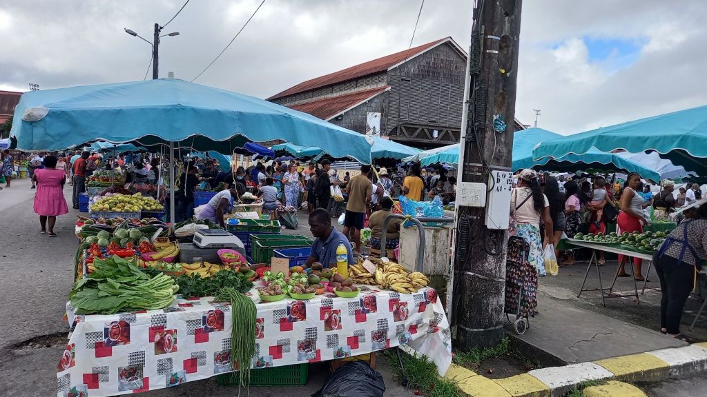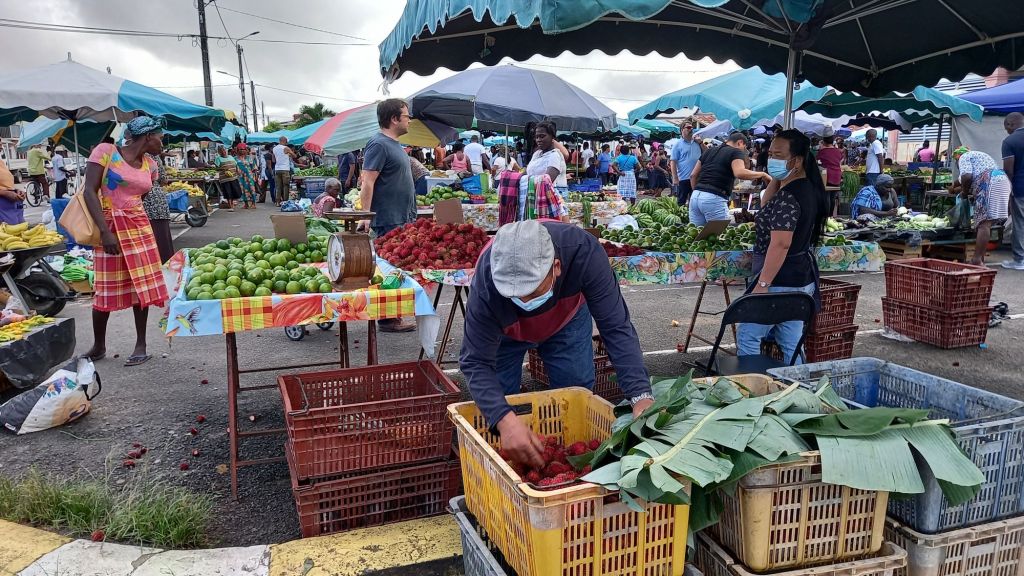 Es gibt auch einen zentralen Marktplatz. Vor allem Mittwochs und Samstags wird hier Obst und Gemüse angeboten. Die Herkunft der Verkäufer ist leicht festzustellen. Aus Französisch-Guyana sind all jene, die ihren eigenen Stand haben. Dagegen kommen die Angebote der auf dem Boden ausgebreiteten Decken oder auch die mit Bananen gefüllten Schubkarren aus Suriname. Der kleine Grenzverkehr funktioniert tadellos. Sporadisch sorgt ein meist gelangweilt umherschauende Polizist für gefühlte Sicherheit. Die zentrale Markthalle in der Mitte ist geschlossen. Muss restauriert werden.