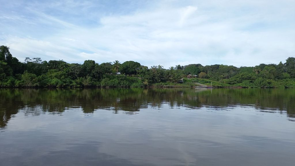 Wir würden eigentlich gerne noch ein paar Tage im Dschungel bleiben. Noch mehr Vögel beobachten. Vielleicht auch mal die Angel auswerfen. Doch wir haben ein sich schließendes Wetterfenster für die Weiterfahrt Richtung Kourou. Uns bleibt keine Wahl. Mit der morgendlichen Ebbe fahren wird flussabwärts und passieren das amerindische Dorf Ayawandé.