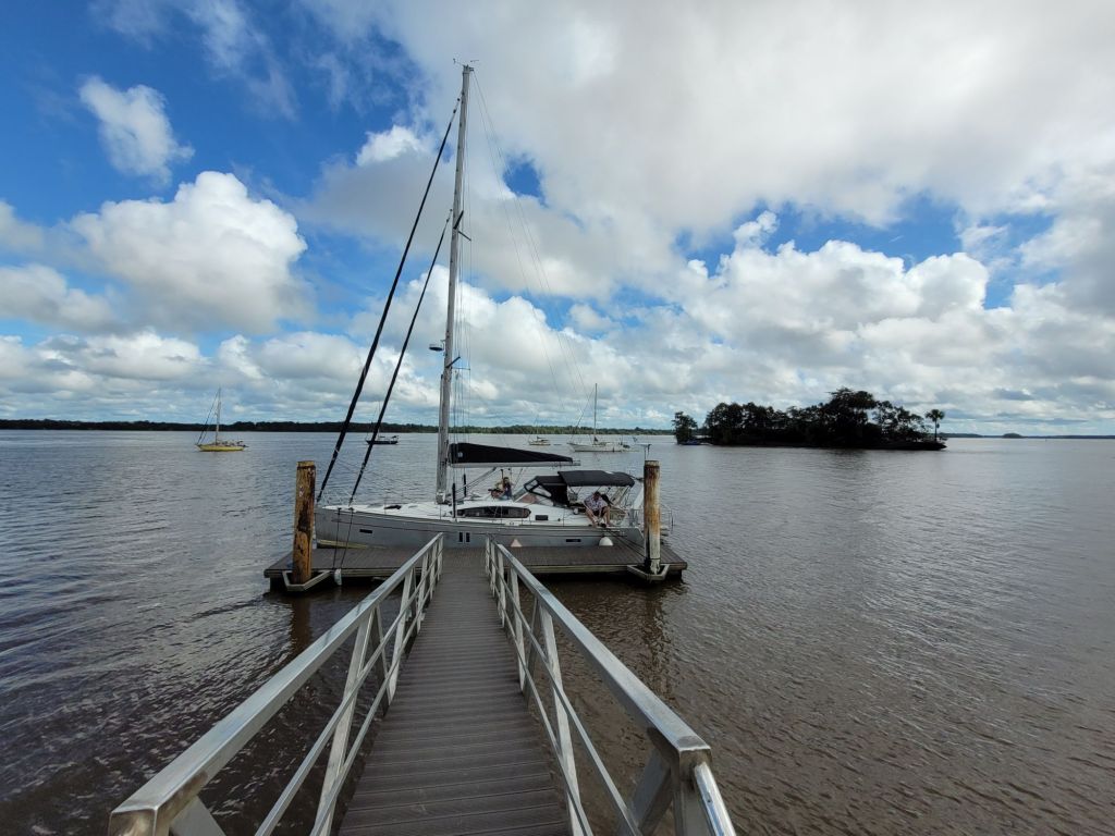 Wir stecken in der Zwickmühle. Einerseits ist die Familie krank. Andererseits schließt sich das Wetterfenster für die Weiterfahrt. Wir wollen zu den Îles de Salut. Halbseidender Kompromiss. Neues Ziel wird das daneben gelegene Kourou. Dort liegen wir ruhiger und können uns erholen. Doch der gut 100sm lange Weg bringt eine Nachtfahrt mit sich.