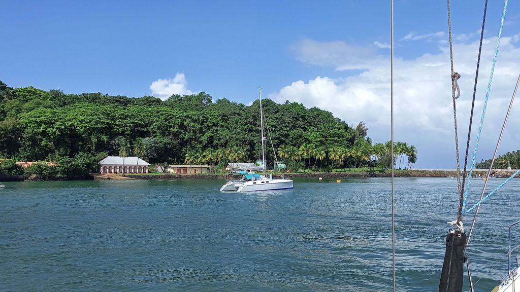 Eine zweite, jedoch kleinere und offenere Ankermöglichkeit liegt vor der benachbarten Île Saint-Joseph. Am nächsten Morgen verholen wir die Samai dorthin und machen uns kurz danach auf einen weiteren Inselspaziergang. Ein ganz anderes Erlebnis als gestern auf der Nachbarinsel und auch einen eigenen Beitrag wert.