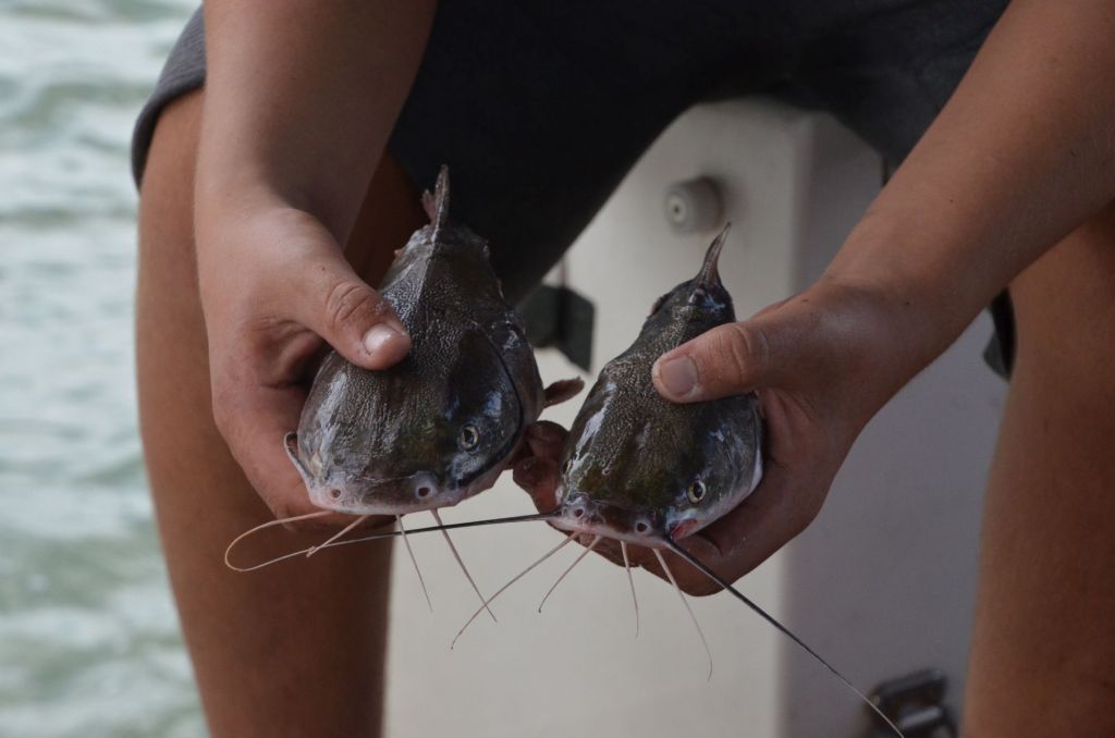 Dafür soll es hier viel Fisch geben. In der Abenddämmerung werfen wir die Angeln rein und haben tatsächlich Erfolg. La Skipper holt einen Catfish (engl. Bezeichnung für alle Welsartigen) raus. Am nächsten Morgen macht Maila es ihr nach. Da wissen wir noch nicht, dass das Blut von Welsen giftig ist. Zum Glück denaturiert die Gefahr bei 60°C und ich grille den Fisch wirklich gut durch. So haben wir ein leckeres und unbedenkliches Geburtstagsessen… Happy Birthday La Skipper (sowie am gleichen Tag auch Skipper-Mama!)