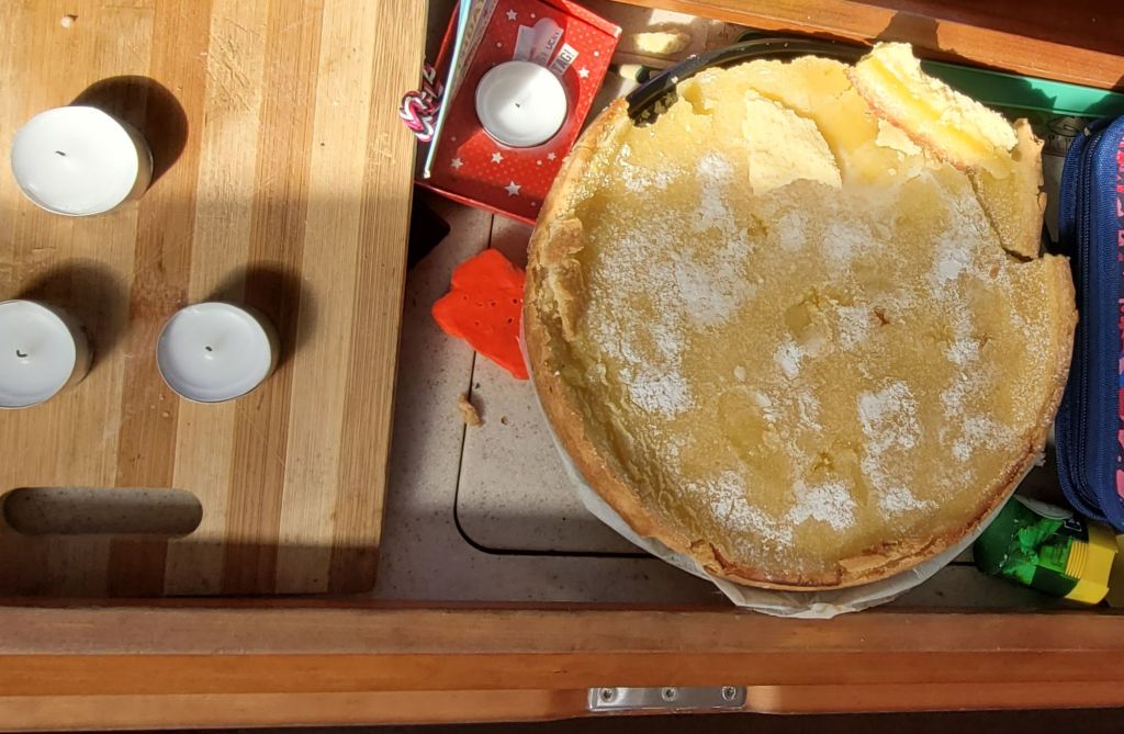Am nächsten Morgen fegt das Geschaukel dann sogar den Geburtstagskuchen vom Tisch. Sehr ärgerlich! Trotzdem bleibt der gerettete Rest sehr lecker. Danach machen wir das Dinghy klar (obligatorisches Aufpumpen der kaputten Seite) und setzen über zur Île Royale. Uns erwartet ein spannender, aber auch bedrückender Spaziergang, über den wir in einem eigenen Beitrag berichten.