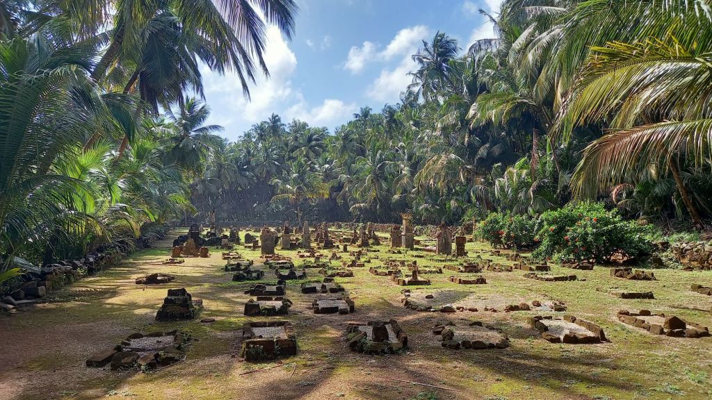 Im Norden der Insel stoßen wir auf einen Friedhof. Wie üblich wurden hier nur Wärter und deren Angehörige begraben. Tote Gefangene wurden schlicht ins Meer geworfen. Sicher auch ein Grund für die damalige, jeden Fluchtversuch deutlich erschwerende Dichte an Haien.