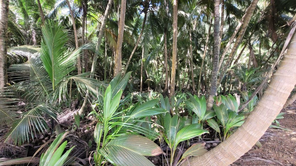Faszinierend sind auch die Palmen. Ganz offensichtlich wachsen sie hier fast schon wie Unkraut. Die Küste ist dicht an dicht von ihnen in Beschlag genommen. Überall unter ihnen liegen Kokosnüsse herum, aus denen es schon wieder grün sprießt. Trotzdem lässt Maila es sich nicht nehmen, eine etwas unglücklich positionierte Nuss an einen besseren Ort zu verbringen.