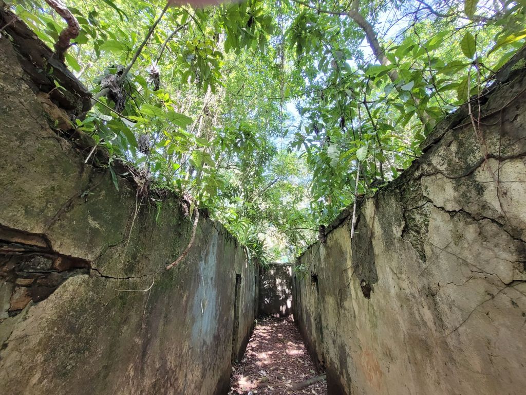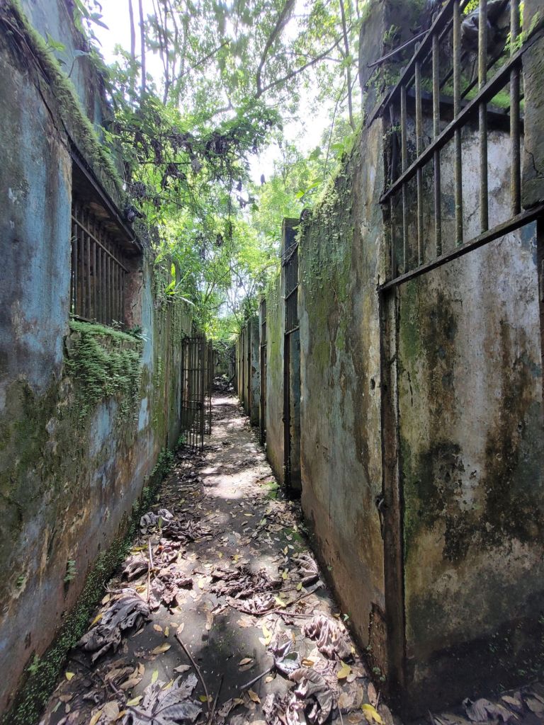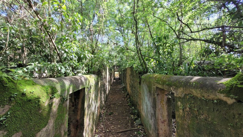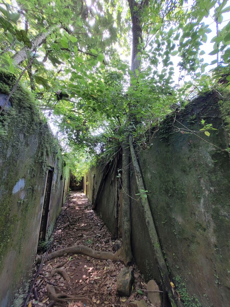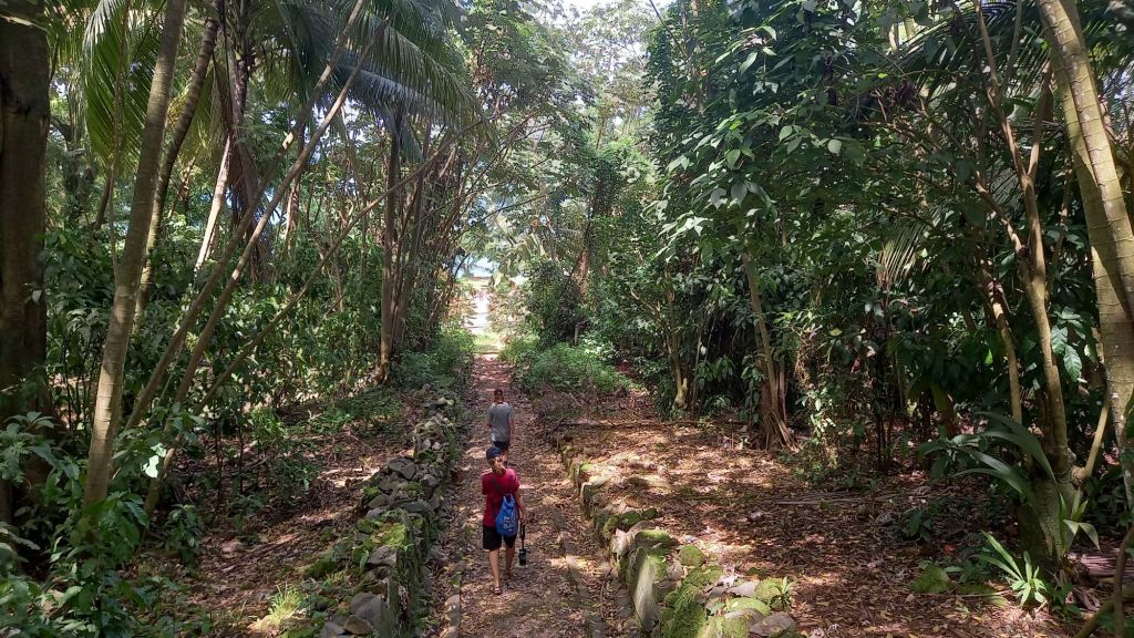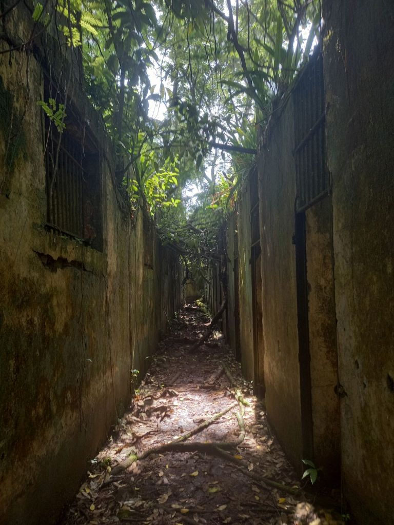 Nach einem Blick auf die kleinere Teufelsinsel führt ein massiver Weg den kleinen, zentralen Hügel hinauf. Doch bei den tropischen Temperaturen und der hohen Luftfeuchtigkeit gerät selbst dieser leichte Anstieg schweißtreibend. Wie mag es erst den arbeitenden Gefangenen bei dem Bau ergangen sein?