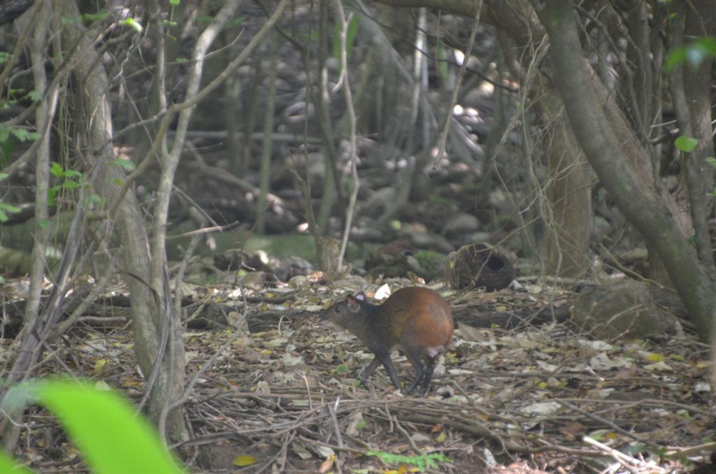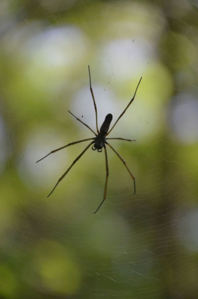 Vorbei am Haus der Fremdenlegion geht es durch den Wald. Sehr idyllisch. Zumindest solange man sich (vorschriftsgemäß) auf den Wegen hält. Schon direkt daneben würde man unweigerlich in große Spinnennetze laufen. Die kleinen Agutis stört das weniger. Sie sind zwar nicht so zahm wie oft beschrieben, lassen sich aber trotzdem gut beobachten.