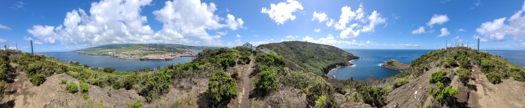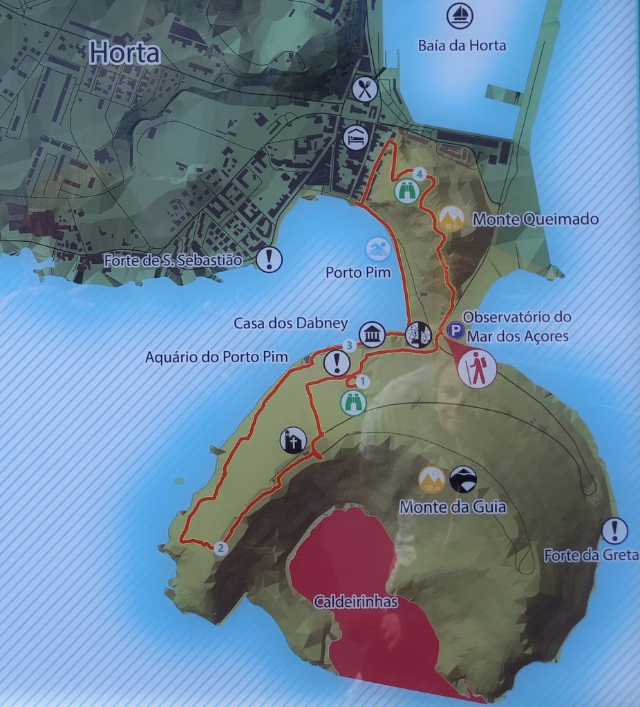 Das erste Ziel des Tages ist der 145m hohe Monte da Guia. Der kleine, ins Meer hinausragende Vulkankrater markiert das südöstliche Ende von Horta und Faial. Das klingt nach einer netten kleineren Wanderung. Zumal der Weg ja nicht einmal bis ganz nach oben führt. ;-)