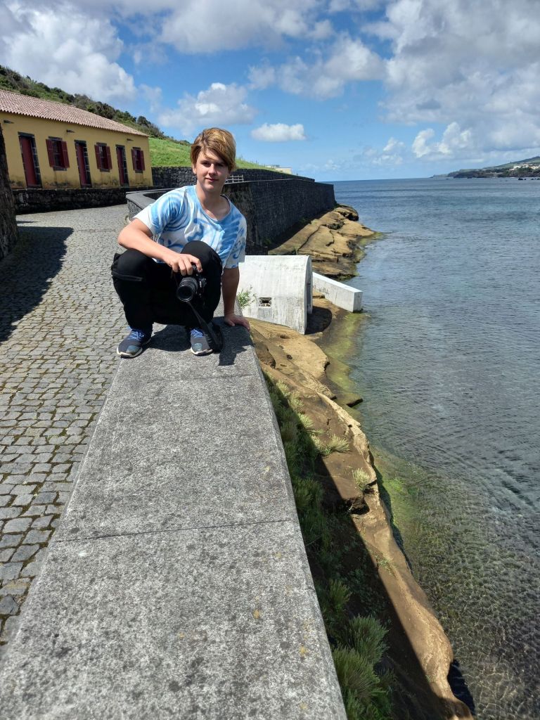 Gerne hätten wir das kleine Aquário do Porto Pim besucht. Leider ist es wegen technischer Probleme geschlossen. Gut möglich, dass das mit dem abgebrochenem Weg daneben zu tun hat. Zumindest ragen hier Rohre aus dem Erdreich ins Nirgendwo. Samuel hat für so etwas natürlich keine Augen. Er späht nach Vögeln.