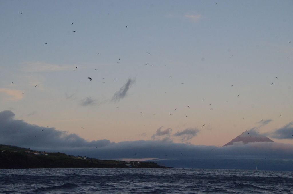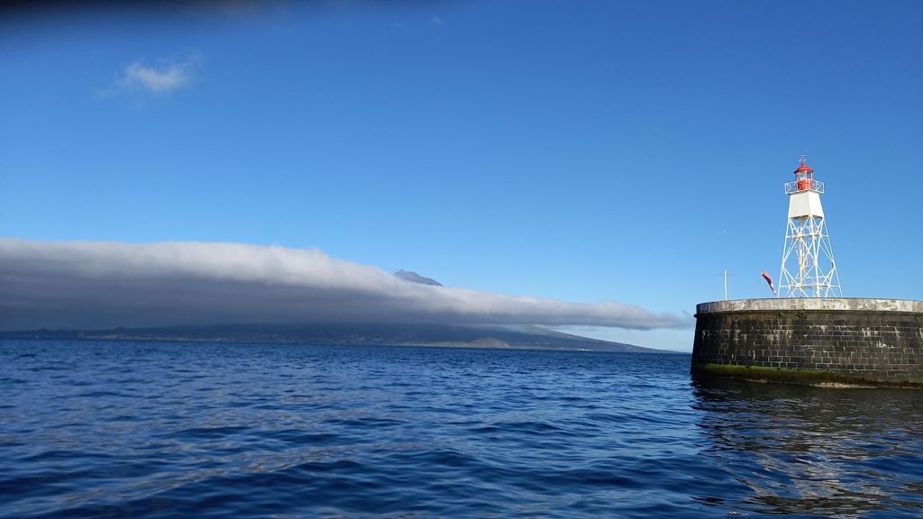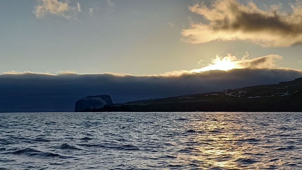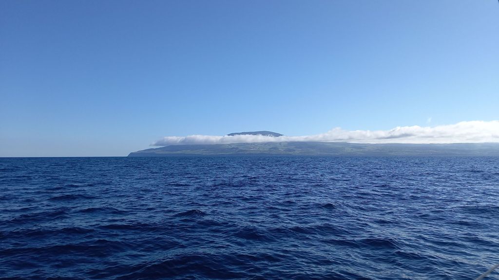 Kaum machen wir kehrt Richtung Osten lassen die Böen nach. Gegen den Strom motoren wir über eine Stunde zurück Richtung Horta, dass wir nun aber links liegen lassen. Weiter motoren wir durch die Nacht. Wie angesagt glänzt Wind durch Abwesenheit. Ich nutze das um immerhin den Wassermacher zum Auffüllen unserer großen Trinkwasserflaschen anzuwerfen. Ansonsten bleibt es ruhig. Wir fahren zwischen Pico und São Jorge bevor es im Morgengrauen auf direkten Kurs Terceira geht.