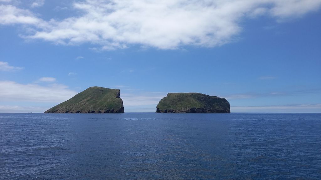 Wir verlassen den Hafen und ich bin gespannt. Wir wollen zu dem Felsen fahren, wo die Sepiasturmtaucher brüten. Uns wurde gesagt, das sie dabei rumkreischen würden. Und kreischen ist das richtige Wort. Die Männchen machen ein Geräusch wie „Aua aua bäh bäh“ die Weibchen haben einen tieferen und ganz anders klingenden Gesang.