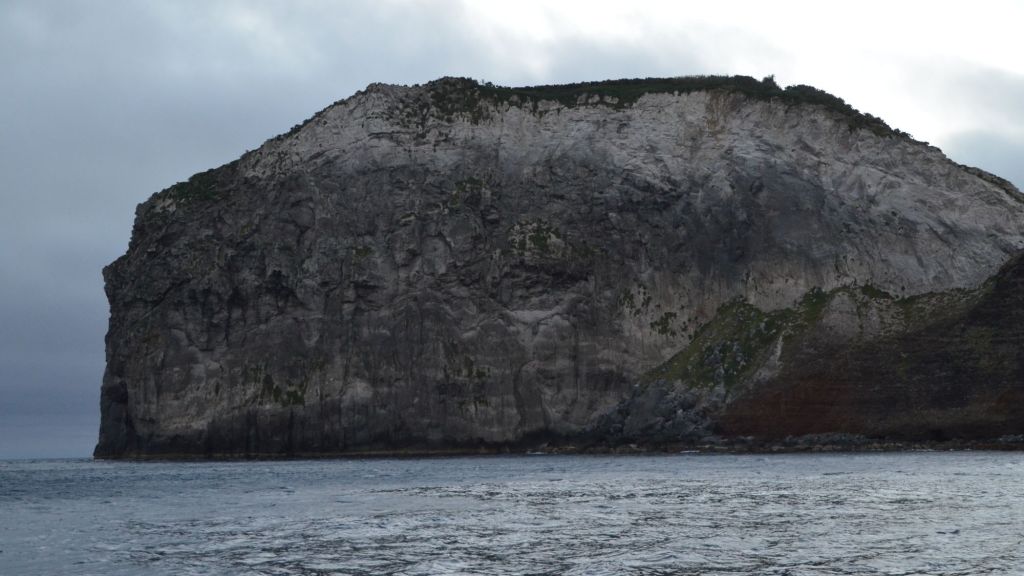 Um uns herum fliegen dutzende Sepiasturmtaucher. Viel mehr als wir auf dem Atlantik gesehen haben. Der Felsen ist schon in Sicht. Es ist nicht mehr weit. Leider kann man auch die dunkle Wolkenfront gut erkennen, die genau hinter dem Felsen bleibt.