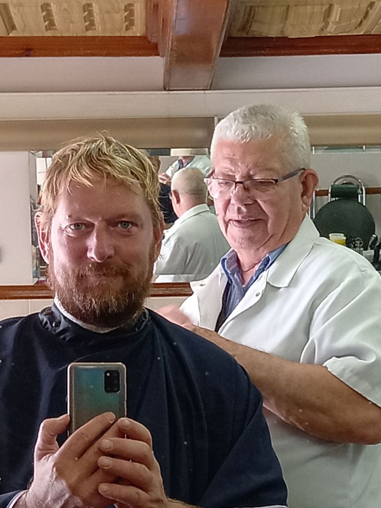 Am zentralen Rathausplatz Praca Francisco Ornelas da Câmara beginnt die kleine Fußgängerzone. Hier finden wir dann auch endlich mal wieder einen Frisör für die Jungs. Nach über einem halben Jahr wird es echt mal wieder Zeit!