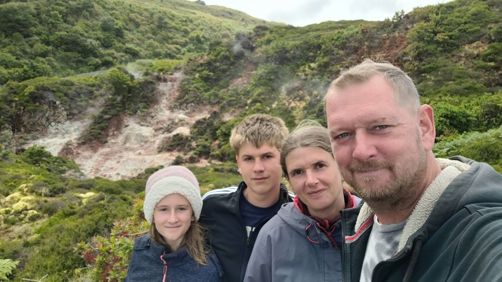 Die Vulkane von Terceira sind weitgehend erlöschen. Nur an einer Stelle zeugt noch aus Fumarolen quellender Dampf von Aktivität. Wir besuchen die Furnas do Enxofra gleich am Vormittag. Die kühlere Luft soll den heißen Dampf hervorheben.