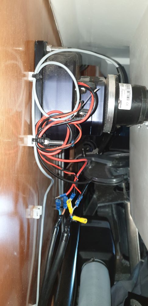 Zu guter Letzt stand noch der Zusammen- und Einbau des Autopiloten auf dem Programm. Doch dieser ging, auch dank der guten fotografischen Dokumentation des Auseinanderbauens, recht problemlos von statten. Der Steuerarm war wieder leichtgängig, der schwere schwarze Kasten nach ein paar Verrenkungen auch wieder an Ort und Stelle angebracht sowie verkabelt und ein erster Testlauf im Hafen verlief vielversprechend. Abgesehen davon, dass der Ruderwinkel nicht angezeigt wurde. Und wie sollte ein Autopilot ohne Kenntnis des Ruderwinkels auch nur halbwegs auf Kurs bleiben? Ich war kurz verzweifelt, der Geber hatte doch die ganze Zeit funktioniert. Wo bekomme ich Ersatz her? Letztlich machte es sich mal wieder bezahlt, eine Nacht über ein Problem zu schlafen. Am nächsten Morgen ließ ich im System nochmal nach Geräten und Datenquellen suchen und da war der Ruderwinkel wieder.