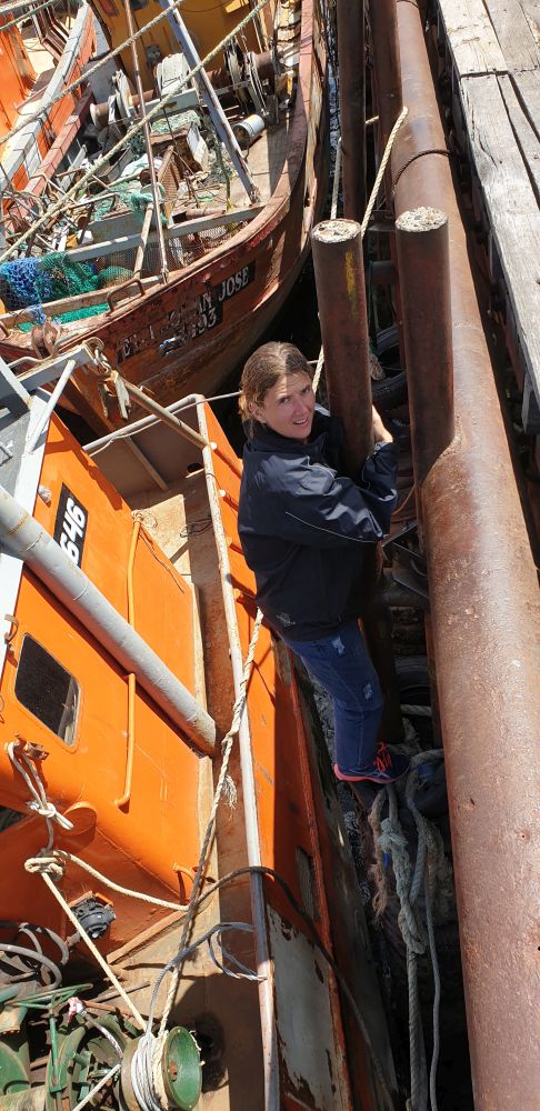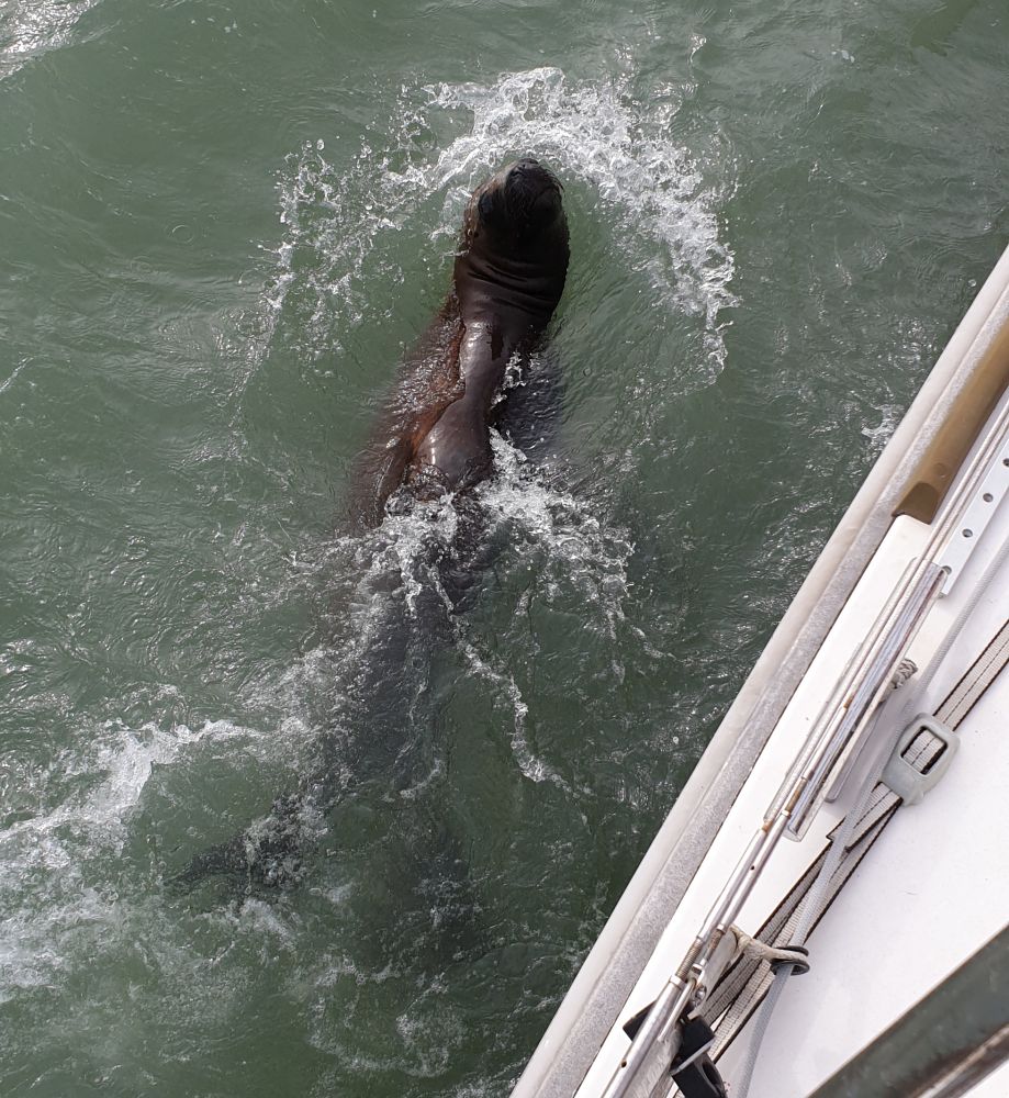 Als sich das Wetter nach einigen Tagen beruhigt hatte, kamen wir dann doch nochmal an den Ponton zurück. Nun waren wir es, die außen am Russen längsseits lagen. Da passierte es dann auch, dass beim Wechsel der Gasflasche eine der großen Schrauben der Gasbox ins Wasser fiel. Eigentlich kein Thema… normalerweise wären Bootshaken und Kescher schnell genug bei der Hand, um den Ausreißer wieder an Bord zu holen. Hier jedoch gab es einen Helfershelfer: Strömung. Schnell war die Schraube außer Reichweite und trieb weiter davon. Das ist der Moment, in dem Helden geboren werden. Todesmutig zog sich der Skipper bis auf die Unterhose aus, ging so schnell wie selten ins Wasser, schwamm mit der Strömung hinterher und gegen die Strömung dann quälend langsam zum Boot zurück. Booooooaaaaaaaahhhhh… war das kalt!!! Aber der Ausreißer war wieder eingefangen.