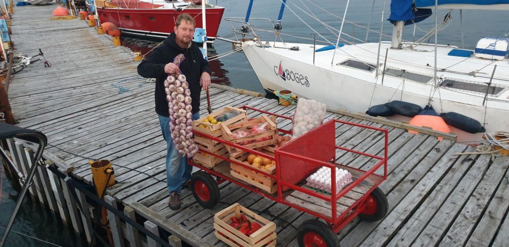 Großeinkauf: Am Vortag der geplanten Abreise kam Skipper Henk von der SY Sarah W. Vorwerk nochmal vorbei, um mit mir auf Einkaufstour zu fahren. Für manche Dinge der Einkaufsliste gibt es bessere Optionen als den Supermarkt um die Ecke. So ging es nach dem Gaswerk direkt zum Obst- und Gemüsegroßhändler. Dort habe ich mit der netten Dame im Office einfach nur eine Liste ausgefüllt und bezahlt. Die Lieferung kam am Abend frei Hafen. So bekamen nun auch wir endlich einmal die schon oft gesehenen Holzkisten. Sie waren eine große Hilfe beim Verstauen. Nach einem Zwischenstopp beim Fleischer (mit gutem, günstigen Wein ;-) war es Zeit, sich von Henk zu verabschieden. Der vor 12 Jahren hier in Ushuaia entstandene Kreis hatte sich geschlossen.
