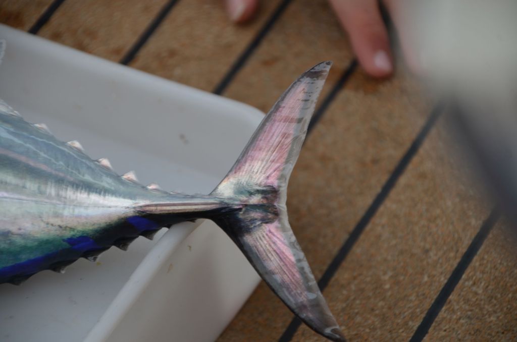 Bei einem ihrer augenscheinlichen Lieblingsmanöver kommen sie von hinten an das fahrende Boot heran, gleiten dicht überholend vorbei, kreuzen den Bug und setzten sich aufs Wasser. Dort beobachten sie dann neugierig das nun wiederum sie überholende Boot.