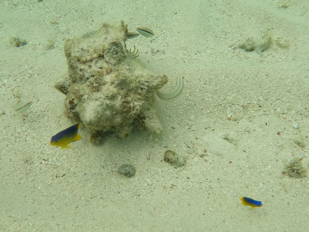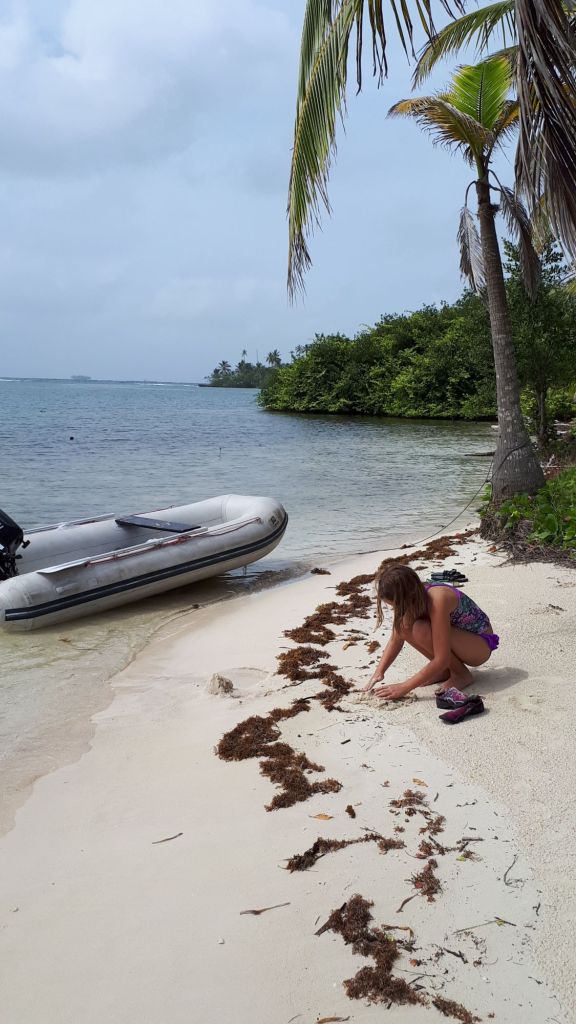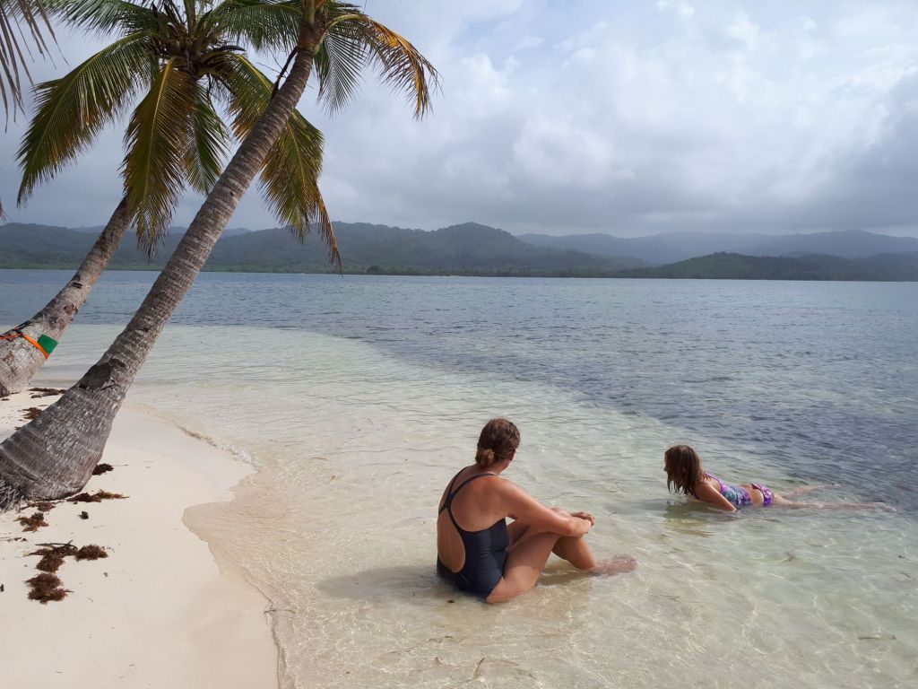 Badesachen angezogen, rein ins Dinghy und los geht es. Was soll ich schreiben?! Es ist echt wunderschön hier. Feiner, gelber Sand, wir planschen im warmen Wasser, über uns scheint die Sonne von blauem, nur mit einigen weißen Tupfern versehenem Himmel und im Hintergrund schaukelt unsere Samai in der einsamen Bucht… Postkarten-Idylle pur!