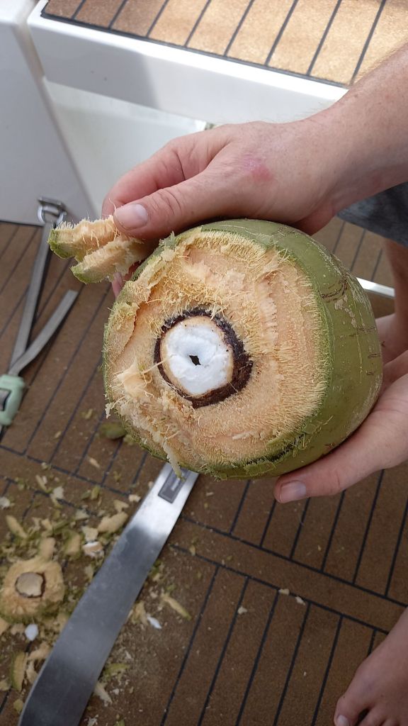 Der Bootsverkehr bei Tupbak hält sich in Grenzen. Recht wenige Kuna-Kanus schauen vorbei. Auch das Angebot unterscheidet sich. Weniger (Meeres-)Früchte, dafür jedoch schon mal die Frage nach einer Reinigung des Rumpfes oder Diesel… wobei ich immer noch nicht weiß, ob er diesen verkaufen oder bekommen wollte.