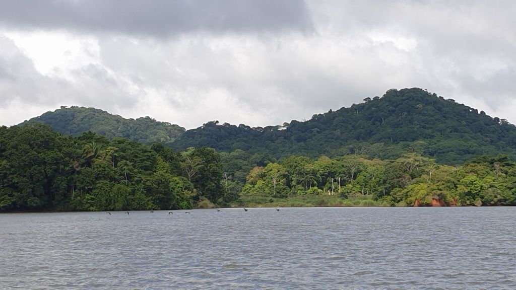 Nach einiger Zeit passieren wir Gamboa. Hier liegen Baggerschiffe und Schlepper auf Abruf. Es gibt sogar ein 5-Sterne-Hotel mit Dschungelfeeling. In Gamboa endet dann auch die Straße aus Panama City. Das Ufer wird natürlicher. Hin und wieder sieht man kleine Häuschen einer Lodge. Immer mal wieder rasen kleine Motorboote mit Menschen in Rettungswesten vorbei. Touristen, die den Reiz des Panamalkanals mit einer Dschungelfahrt kombinieren. So geht es einmal quer durch das schmale Land.