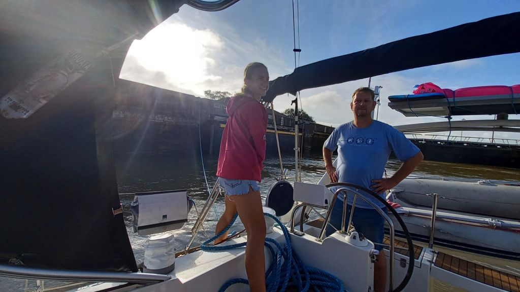 Professionell werden wir eingewiesen. Motor aus. Geschafft. Nun heißt es Abschied nehmen. Noch einmal vielen Dank an Rudi und Natalija. Ihr könnt euch nicht vorstellen, wie viel lieber wir mit euch, als mit „irgendwelchen pseudo-professionellen Linehandlern“ durch den Kanal gefahren sind. Es war eine Riesenfreude, euch an Bord zu haben!