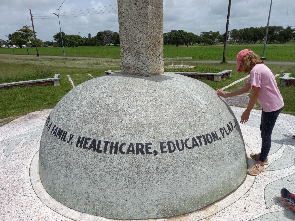 Der Besuch des Guyana National Park ist unbestrittener Höhepunkt unserer kleinen Tour. Jetzt nicht wegen der besonderen Naturschönheit des Parks. Er dient eher der sportlichen Ertüchtigung und als Treffpunkt bei großen Festen, wie beispielsweise Ostern. Dann ist der Weg voller Menschen und von Buden gesäumt. Eine schöne Geste ist das Children’s Monument. Wenn diese Rechte doch auch nur umgesetzt würden!