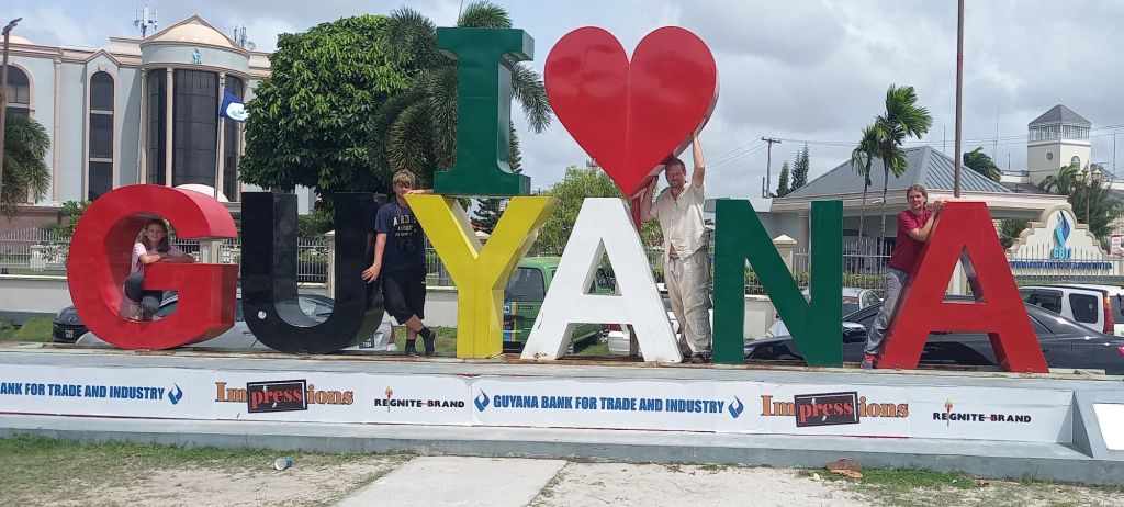 Natürlich darf auch das obligatorische Touri-Foto am „I love…“-Schild nicht fehlen. Gleich daneben bittet das Guyana Marine Turtle Monument um Aufmerksamkeit. Danach fahren wir auf unsere eigenen Bitte noch zu einem Shop, in dem es Andenken geben soll. Aber ganz ehrlich… die Auswahl und Qualität in diesem China-Kaufhaus ist so übel, dass wir günstig davon kommen.