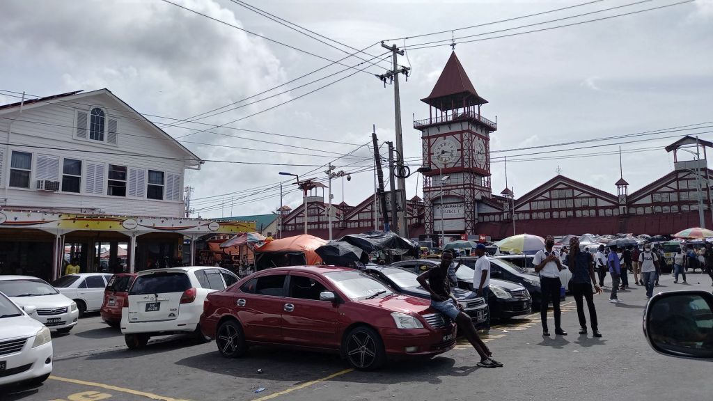 Im weiteren Verlauf entpuppt sich unsere City-Tour eher als Drive-Through. Vorbei an den Residenzen der Staatsoberhäupter fahren wir in Richtung Zentrum. Das Nationalmuseum ist geschlossen. Am grenzwertig chaotischen Stabroek Market steigen wir auch nicht aus. Seit 1842 als offizieller Markt anerkannt erstreckt er sich auf etwa 7000m2. Das 1881 fertig gestellte Marktgebäude ist vermutlich die älteste noch in Gebrauch befindliche Struktur der Stadt. Trotzdem sind wir noch allzu böse, uns nicht ins Gewühl zu stürzen. Der Eindruck aus dem Wagen reicht.