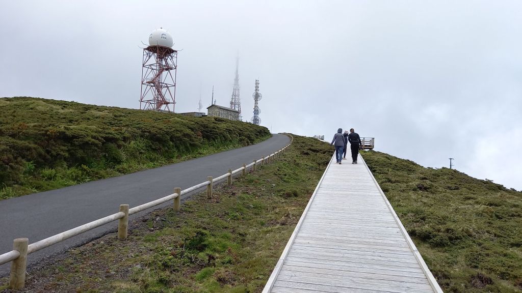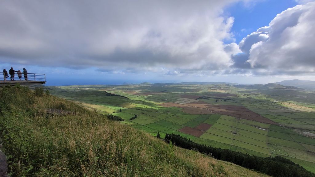 Direkt hinter der Marina wacht die Gottesmutter über Praia da Vitória. Nachts hell erleuchtet stahlt sie vom Miradouro da Facho. Gerne teilen wir ihren schönen Ausblick über die Stadt. Hier oben steht auch ein Modell des Telégrafico Ótico. Zur Zeit des portugiesischen Bürgerkrieges wurden mit den drei verstellbaren Signalen und einem 6-stelligen Code Nachrichten zwischen Praia und Angra ausgetauscht.