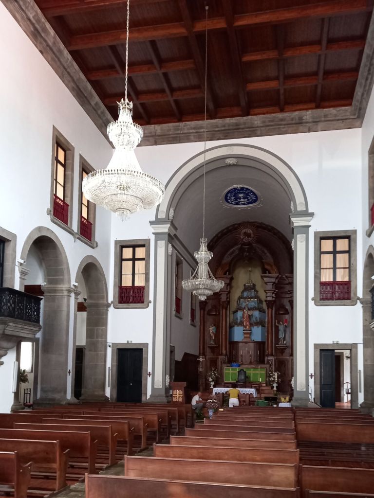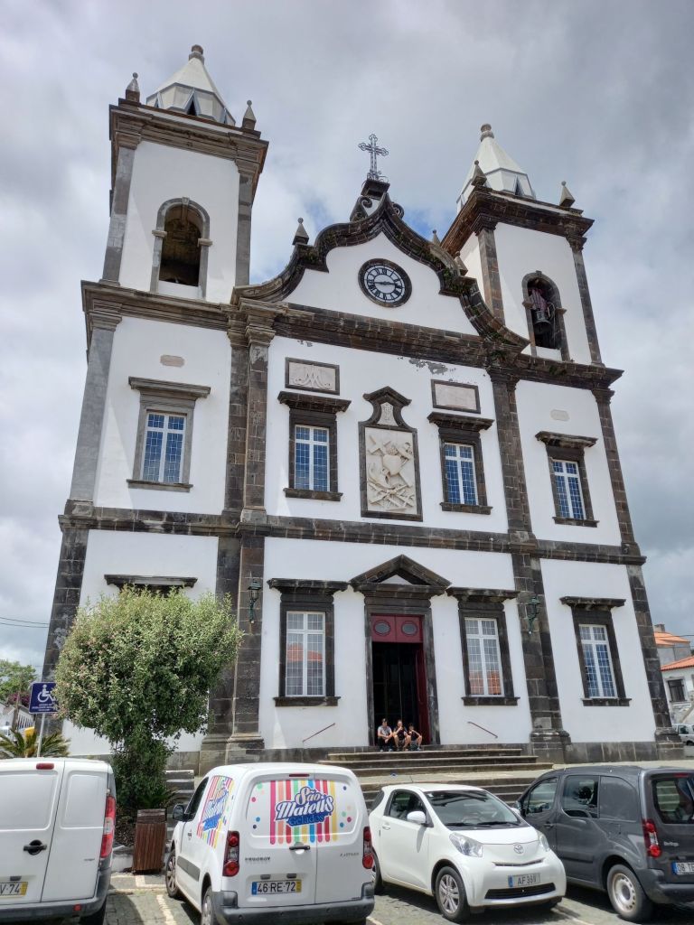 Die nach einem Brand im 20. Jahrhundert vollständig wiederaufgebaute Igreja de Senhor Santo Cristo finden wir leider nur geschlossen vor. Wir begnügen uns mit der schönen blau-weißen Fassade. Damit sind wir in Gesellschaft der Büste des bedeutenden portugiesischen Vitorino Nemésio, berühmtester Sohn der Stadt.