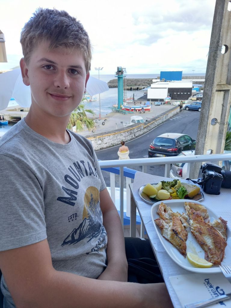 Am zentralen Rathausplatz Praca Francisco Ornelas da Câmara beginnt die kleine Fußgängerzone. Hier finden wir dann auch endlich mal wieder einen Frisör für die Jungs. Nach über einem halben Jahr wird es echt mal wieder Zeit!