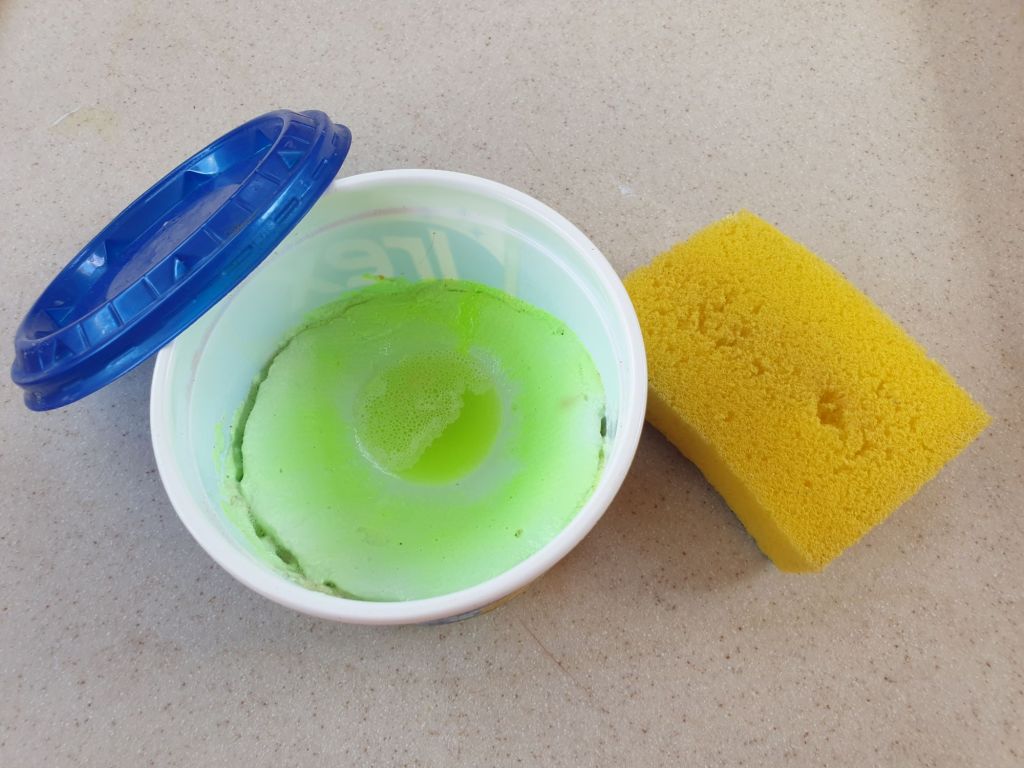 Hat man es erst einmal kapiert ist die Auswahl groß. Wir entscheiden uns für Limon und Coconut. Die Handhabung ist denkbar einfach. Der Becher steht offen neben der Spüle, bei Bedarf geht man mal kurz mit dem Schwamm durch und schon kann man spülen, spülen, spülen. Der Skipper ist begeistert. Sehr ergiebig und keine Auslaufgefahr auf einem schwankenden Segelschiff. Der einzige Haken ist, dass es sich mit Salzwasser leider noch schlechter nutzen lässt, als ein „normales“ Flüssigspülmittel. Da kommt dann besser der Bordklassiker zum Einsatz. Aber sonst denkt der Skipper schon jetzt mit ein bisschen Wehmut an den irgendwann bevorstehenden Tag, an dem die Vorräte aufgebraucht und der Nachschub versiegt ist… an festem Spüli!